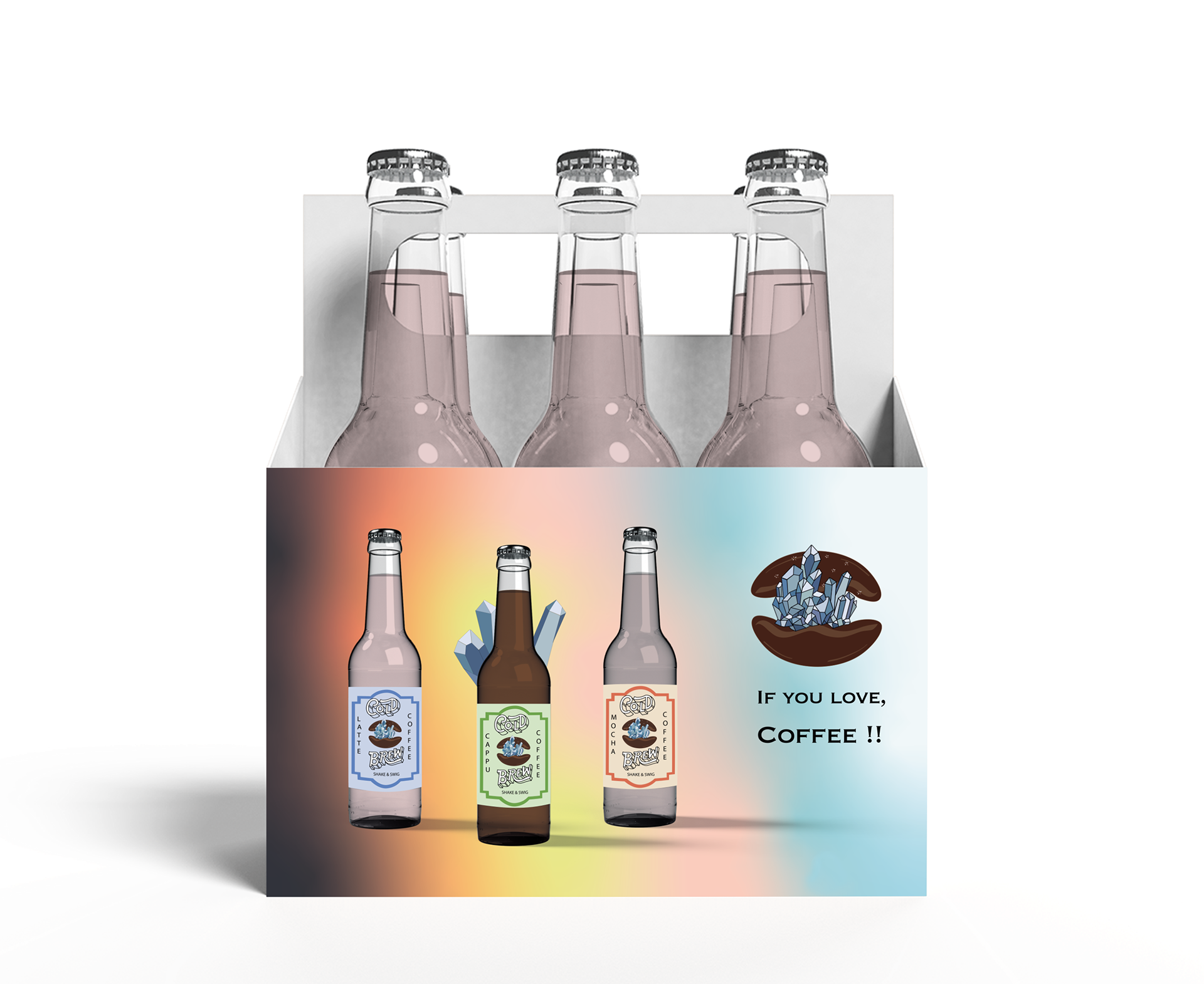 J'ai conçu le logo, l'étiquette et le packaging pour une gamme de boissons au café baptisée "Cold Brew", en utilisant les logiciels Illustrator et Photoshop. Cette gamme comprend trois variétés : le latte, le cappuccino et le moka.